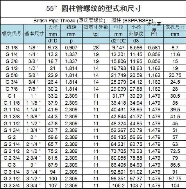 55°圓錐管螺紋的轉化